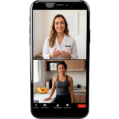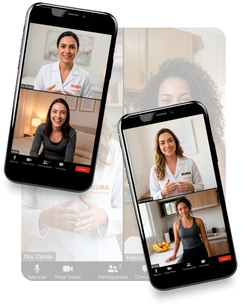 Clique aqui e comece agoraTudo acontece por videochamada, direto pelo aplicativo. Você agenda o horário que for melhor para você, entra na consulta pelo celular ou computador e conversa com a nutricionista. Ela analisa seu peso, altura, IMC e objetivos, monta seu cardápio personalizado e você ainda tem 2 encontros por mês para acompanhar sua evolução e fazer os ajustes necessários.